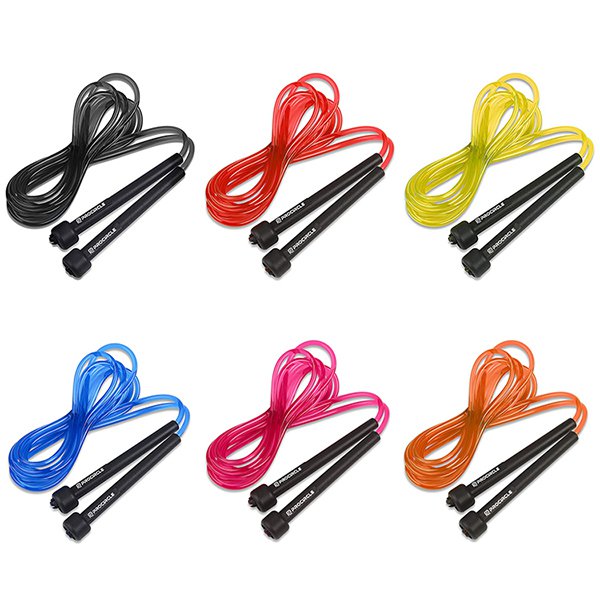 1. PP手柄跳繩-PVC塗層電纜繩尺寸為繩長2.7m,直徑5mm,手柄125mm,直徑20mm,適合不同身高使用。