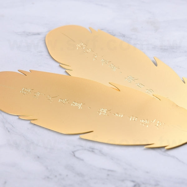 1. 客製化金屬書籤-羽毛書籤,尺寸為4.5*14.5cm,精緻設計展現尊貴品味。