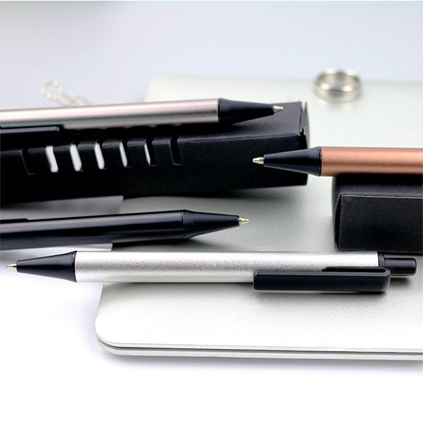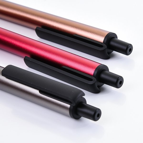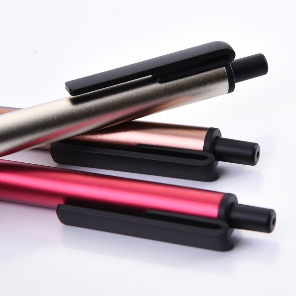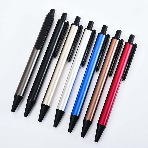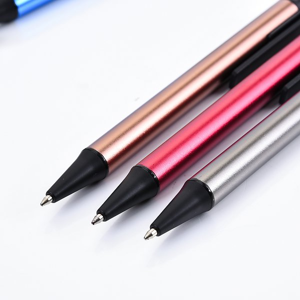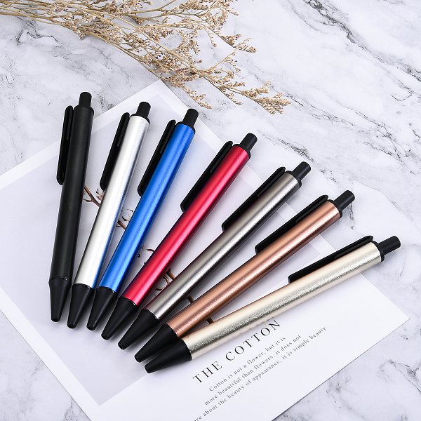 1. 新設計按壓式金屬廣告圓珠筆,尺寸14.2cm,筆芯顏色有藍色和黑色可選擇,筆桿顏色多達7種選擇,外觀現代感十足。