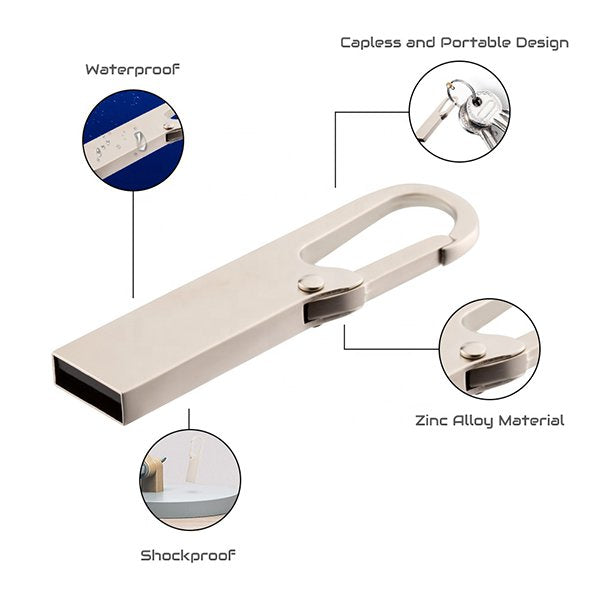 1. 掛勾金屬隨身碟尺寸為51*16*4mm,採用金屬材質,堅固耐用,適合多種場景使用。