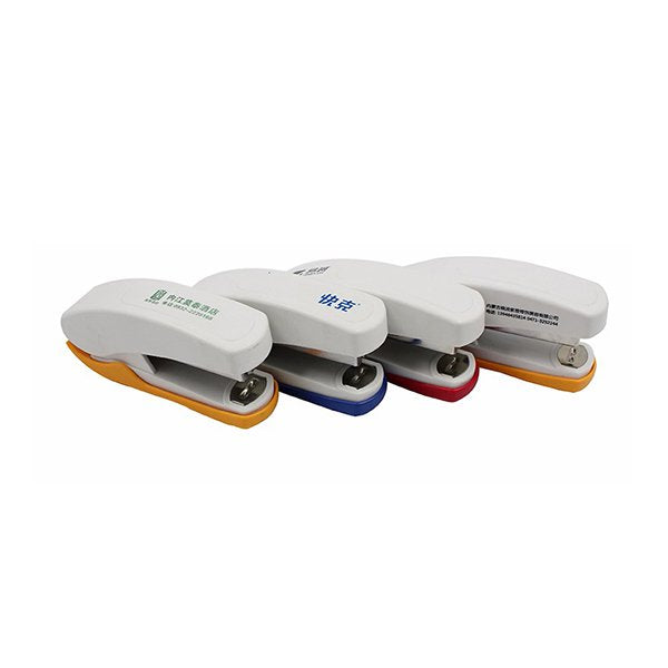 1. 多色塑料釘書機,尺寸為10*2.4*4.5cm,重量輕巧50g,材質為耐用塑料。