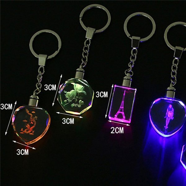 1. 心型3D水晶LED燈鑰匙圈,材質為水晶,尺寸為3*3CM,精緻小巧,適合作為企業禮贈品。