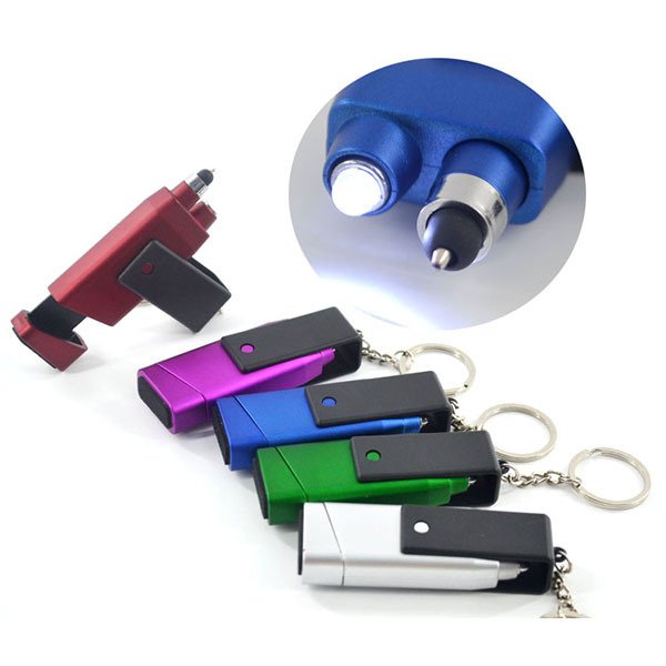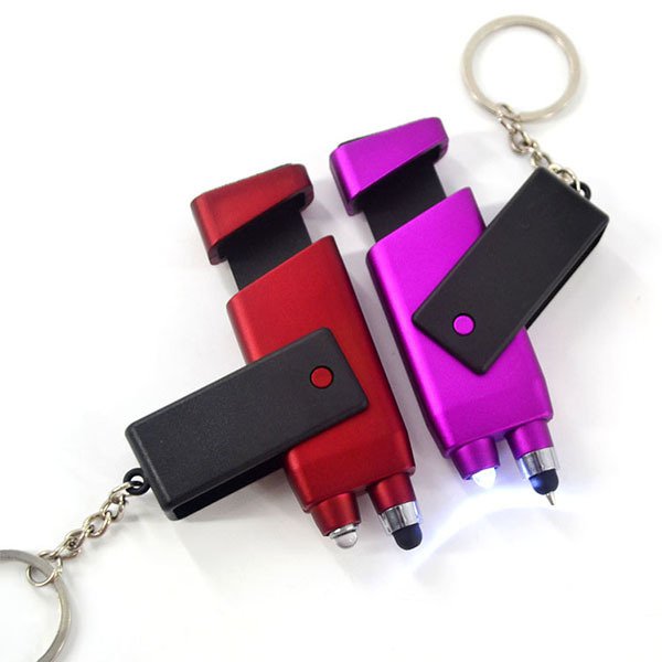 1. 6合1多功能鑰匙圈,結合筆、觸控筆、LED燈、手機支架、螢幕清潔功能,方便實用。
