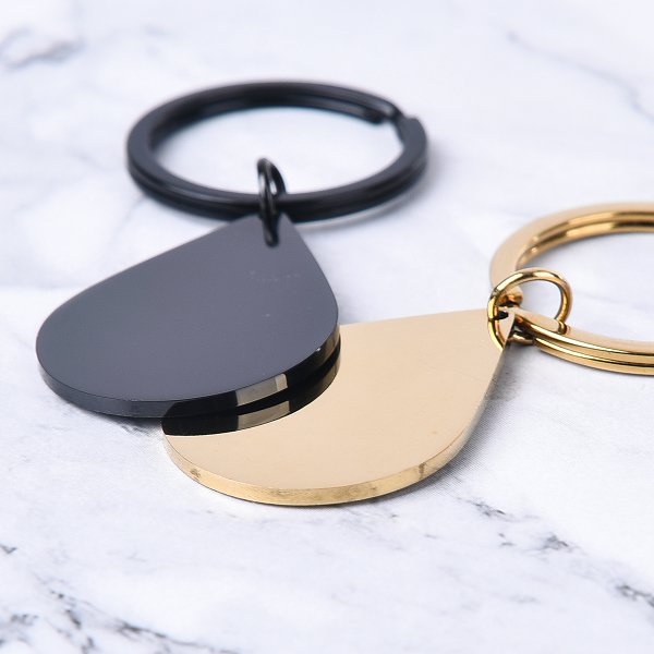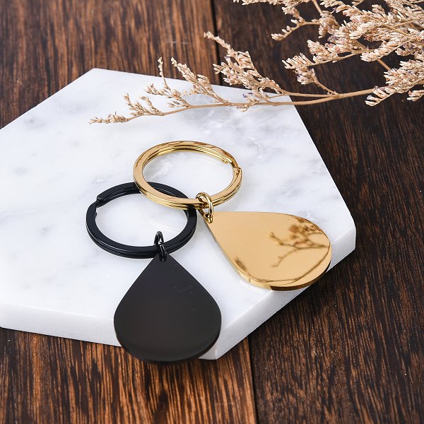 1. 精緻設計的金屬水滴狀電鍍不銹鋼鑰匙圈,適合企業禮贈品,展現尊貴品味。