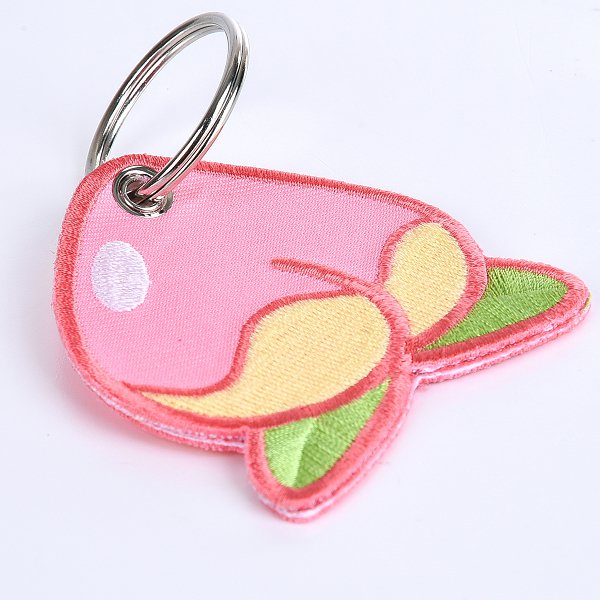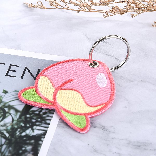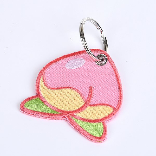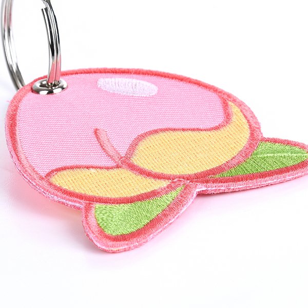 2. 電繡斜紋鑰匙圈,蜜桃造型,可客製化設計,獨一無二。