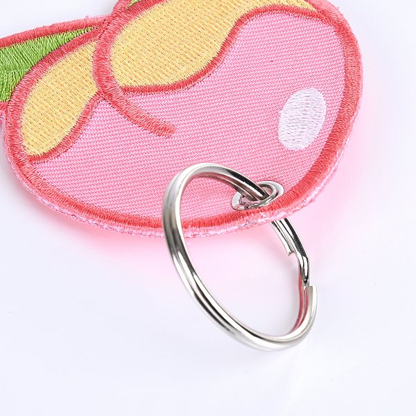布條鑰匙圈-尺寸5.7x6.5cm電繡斜紋鑰匙圈-蜜桃造型