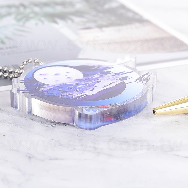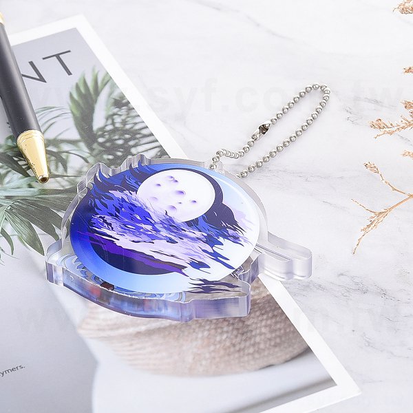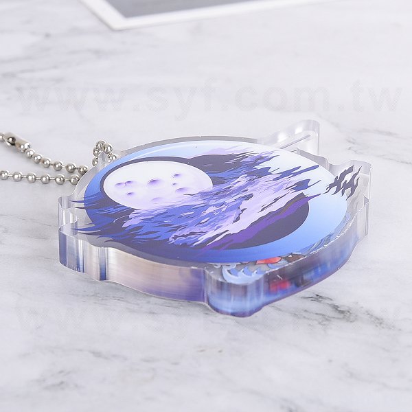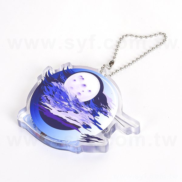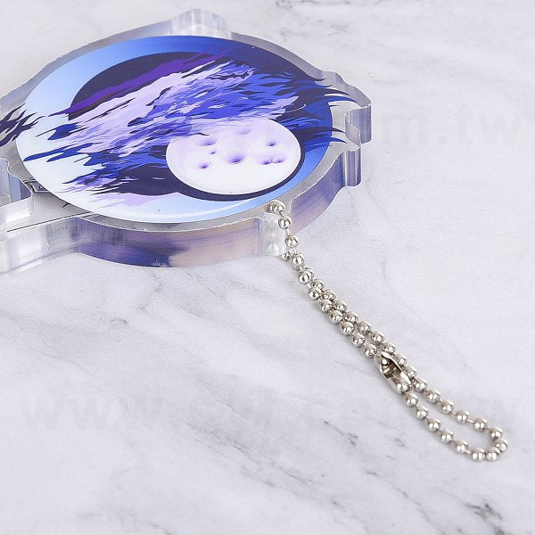 造型厚壓克力鑰匙圈-雙面彩色印刷客製-銀色波珠鍊