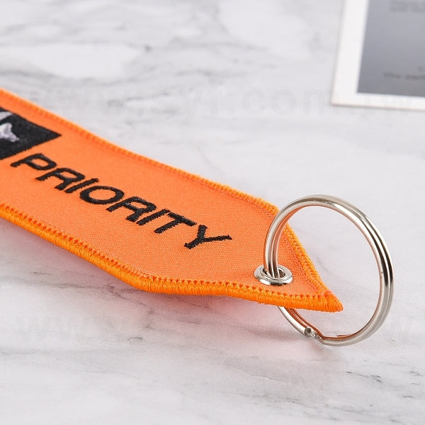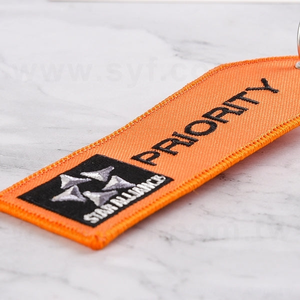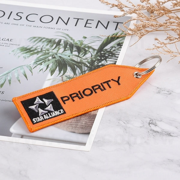 1. 布條鑰匙圈尺寸13x3.8cm,採用精緻電繡工藝,展現專業形象。