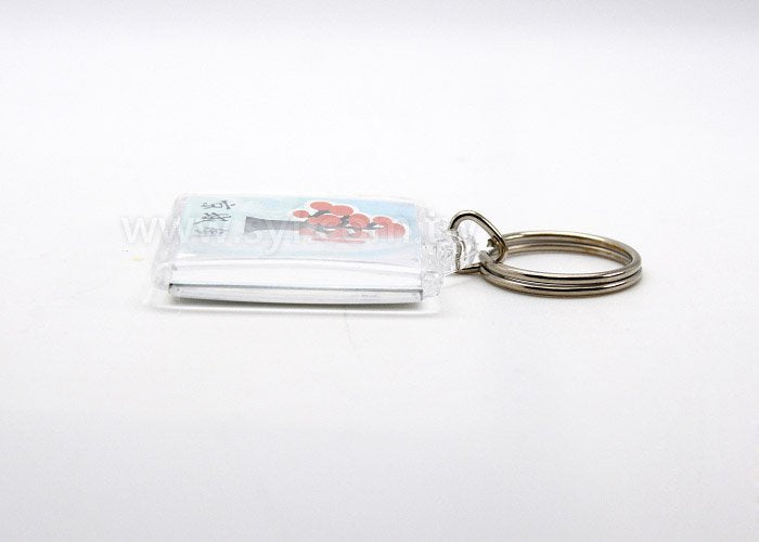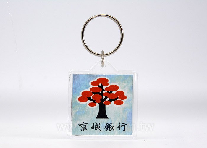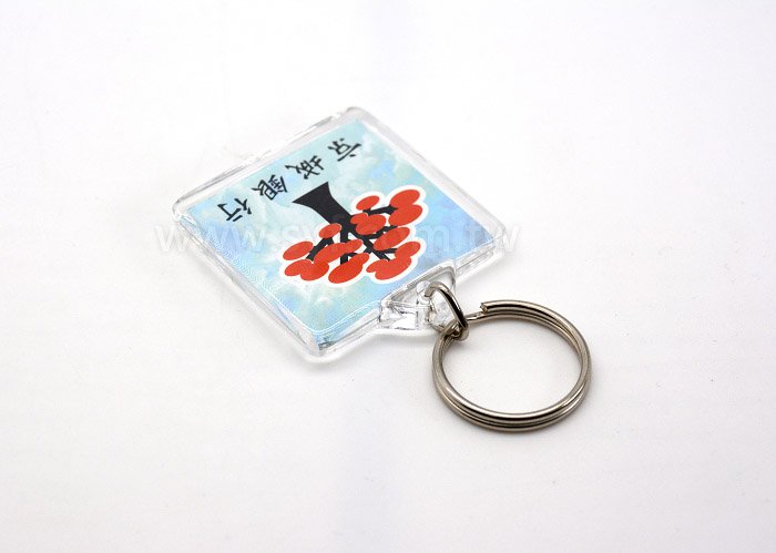 1. A級壓克力材質,透明顏色,配備三角勾和雙圈鑰匙圈,尺寸約40*40*4mm,內徑34*34mm,印刷方式單/雙面彩色。