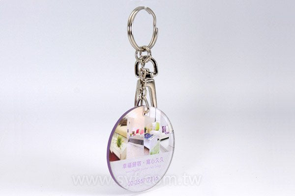 1. 造型壓克力鑰匙圈,透明材質搭配彩色印刷,展現企業形象。