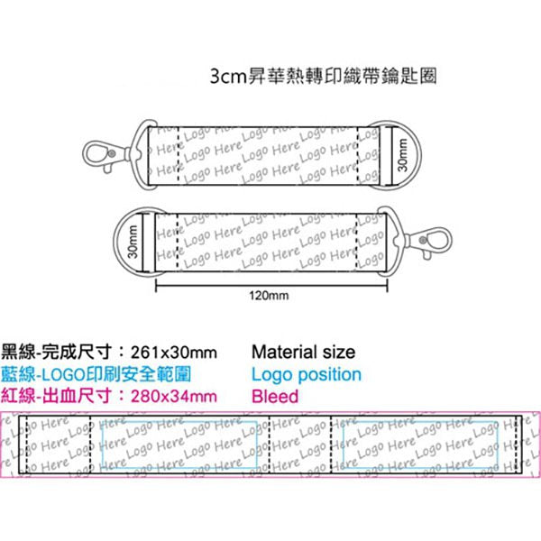 尼龍帶鑰匙圈-雙頭扣環W3xH12cm-單面彩色印刷