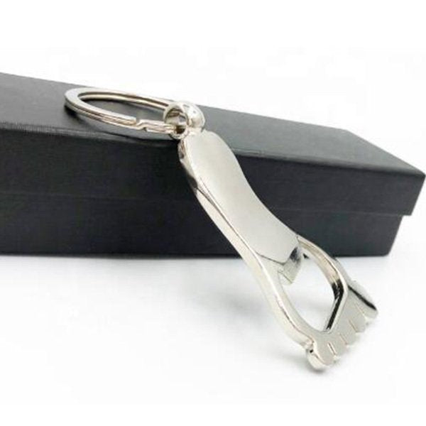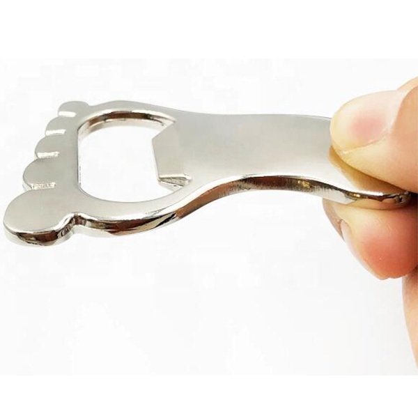 1. 金屬鎳腳形開瓶器,材質堅固耐用,尺寸為47*30*5mm,適合商務宴會及婚禮派對使用。客製化印刷公司LOGO,展現專業形象。