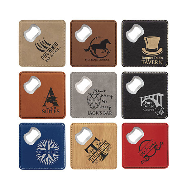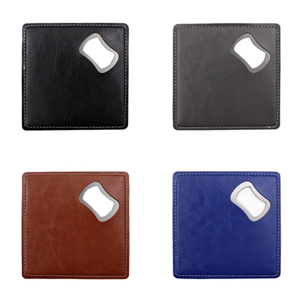 方形皮革開瓶器杯墊-禮品創意定製logo