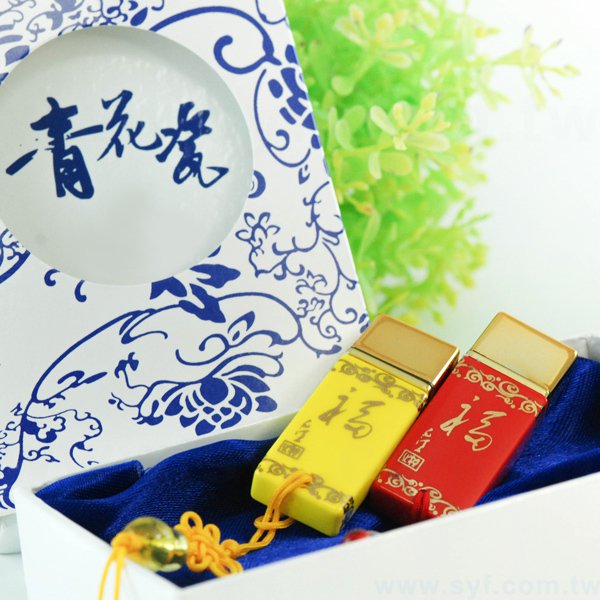 隨身碟-中國風印刷青花瓷USB-金黃陶瓷隨身碟-兩種訂購推薦顏色可選-採購訂製股東會贈品