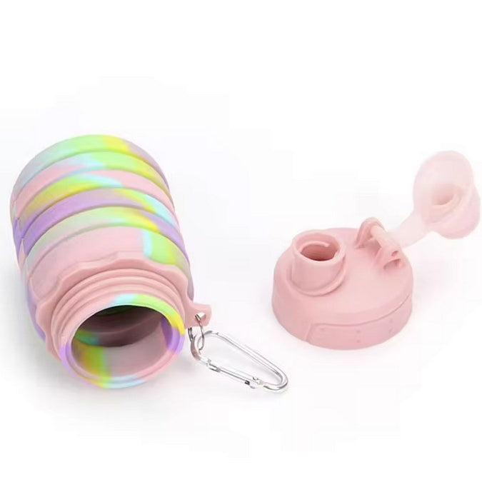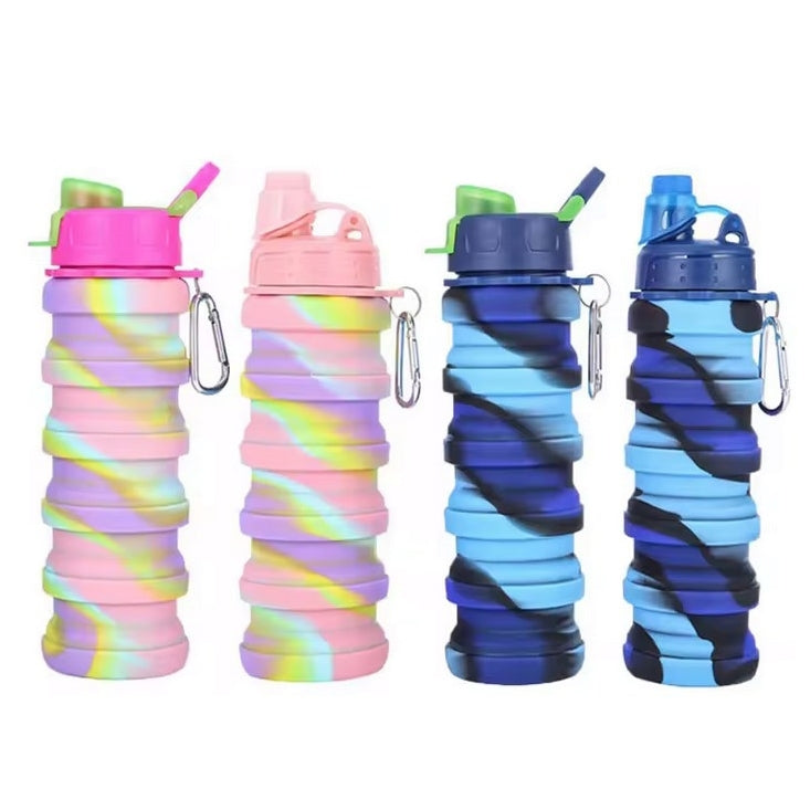 500ML便攜式伸縮矽膠水瓶-戶外旅行折疊水壺-附登山扣