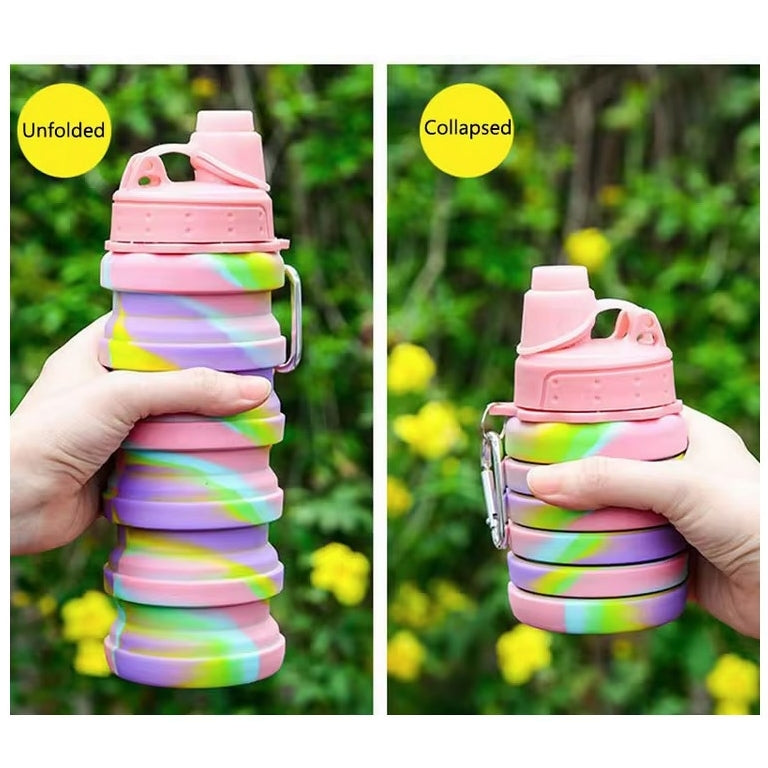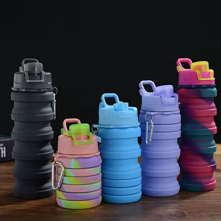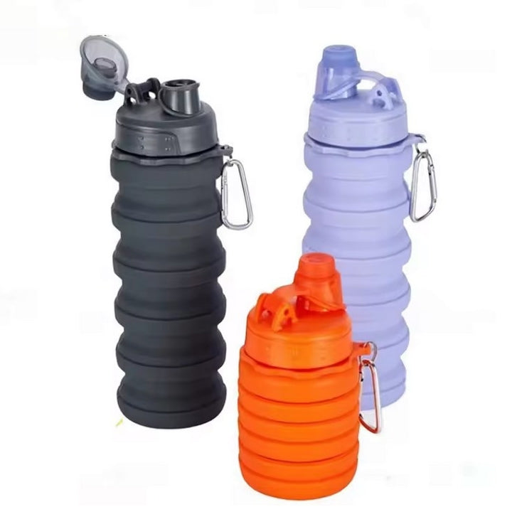 1. 500ml便攜式伸縮矽膠水瓶,戶外旅行的理想選擇,折疊設計節省空間,方便攜帶。