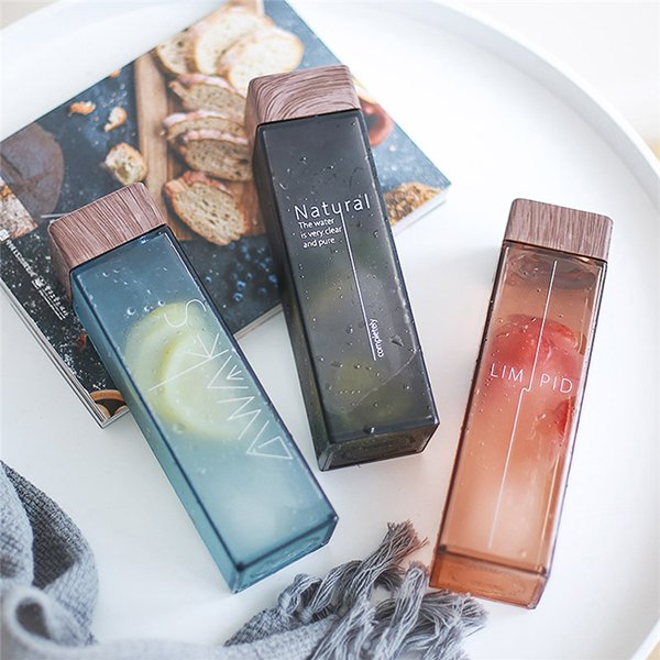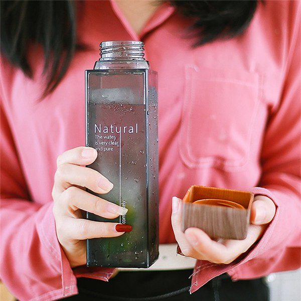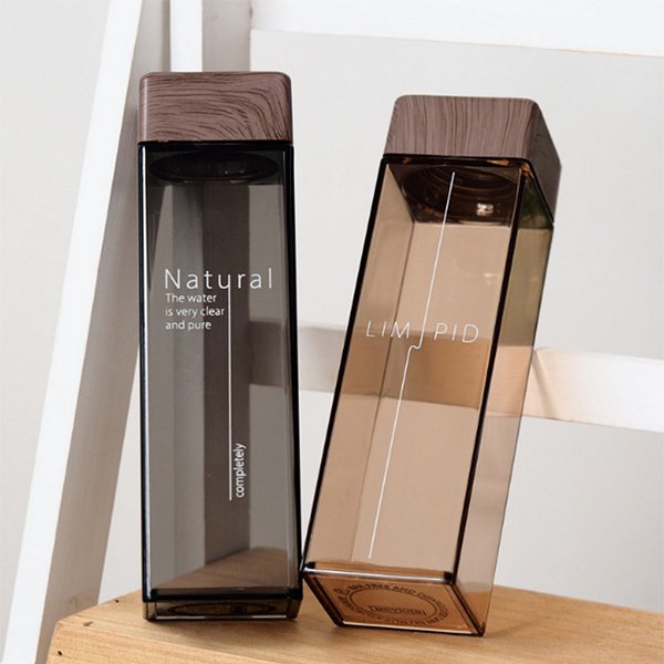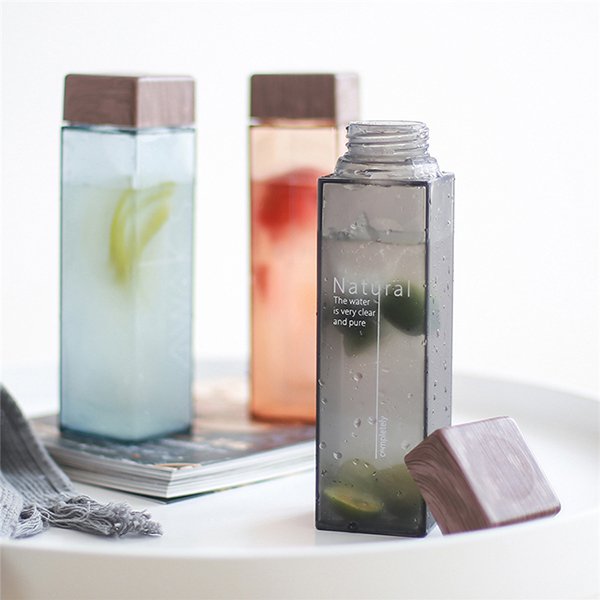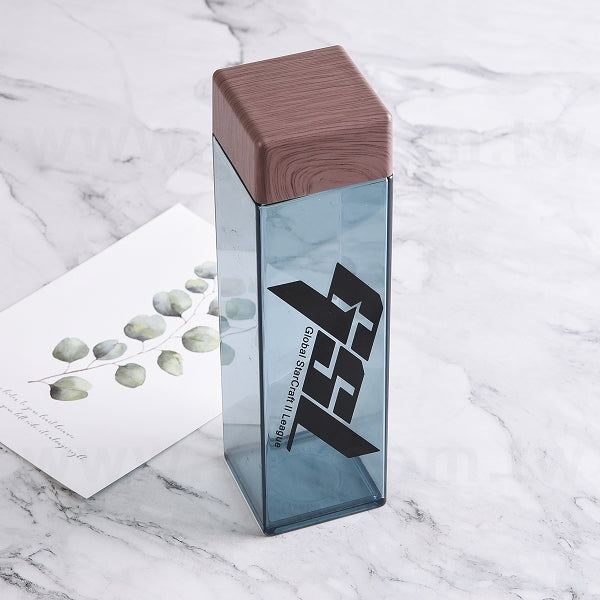 1. 500ml木紋蓋方形水瓶-塑膠方瓶,時尚設計適合辦公室使用。