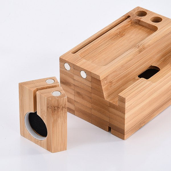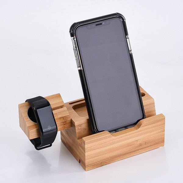竹木二合一手機擴音底座-手機+手錶材質支架禮品-可印刷logo