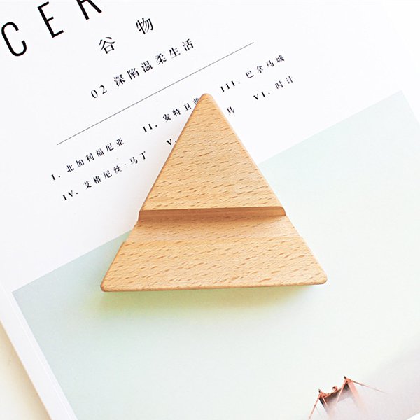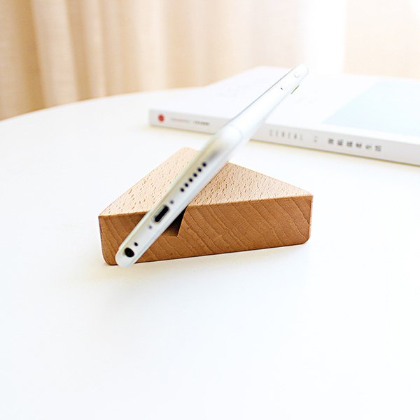 1. 獨特三角形造型木製手機架,適合辦公室或家中使用。