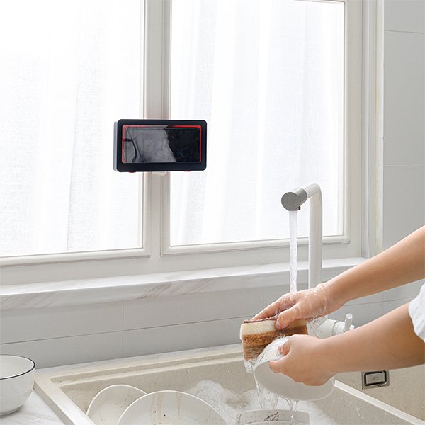 2. 輕巧方便設計,可將手機掛牆上,盡情享受沐浴時的音樂和影片。