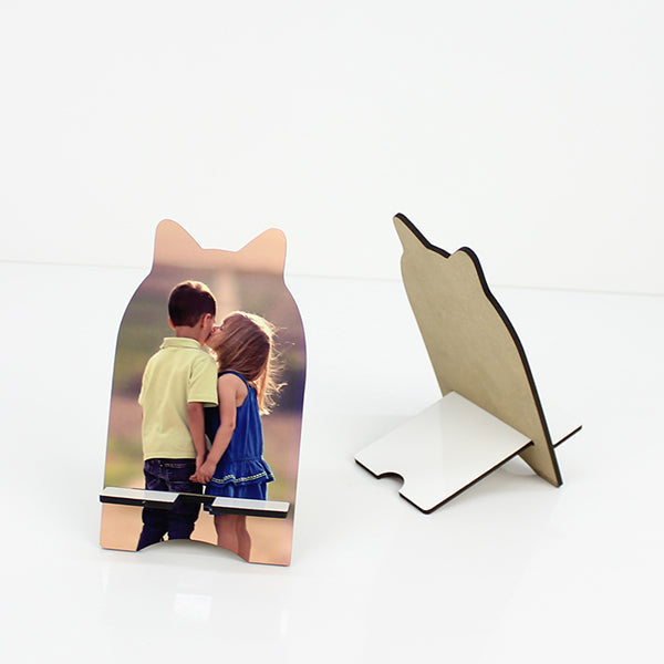 1. 尺寸為135*79*3mm,木製熱轉印手機架,環保耐用,讓辦公桌整齊有序。