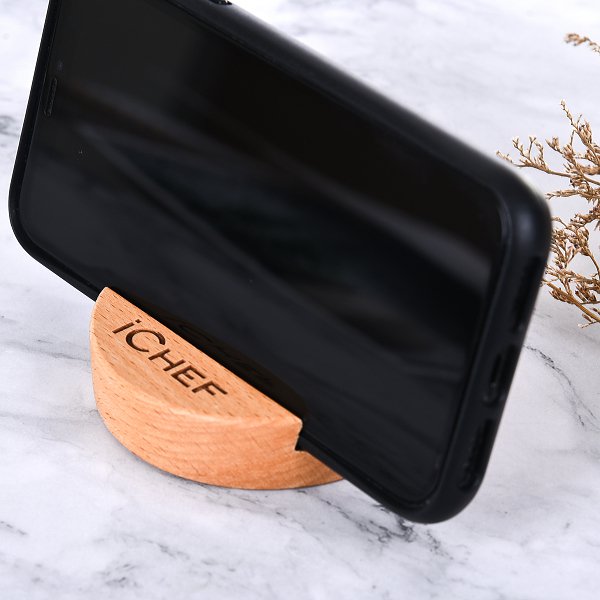 1. 精緻木製手機架,簡約圓形造型,適用於辦公室、家居使用。