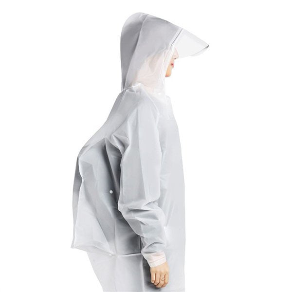 連身式EVA磨砂透明成人雨衣-可容納後背包設計