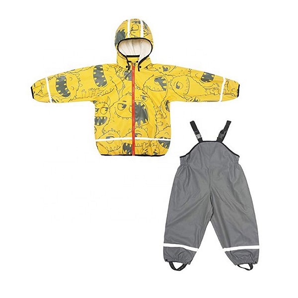 1. 兩件式背帶安全反光條兒童雨衣,採用聚酯纖維/PVC塗層材質,提供輕便舒適的穿著感受。