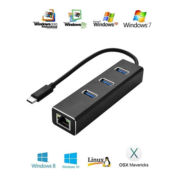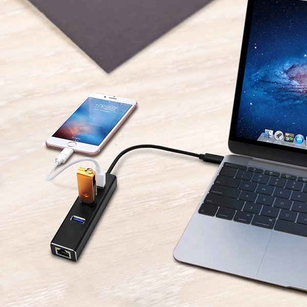 Type-C接口HUB集線器-3USB-鋁合金材質-可連接網路線