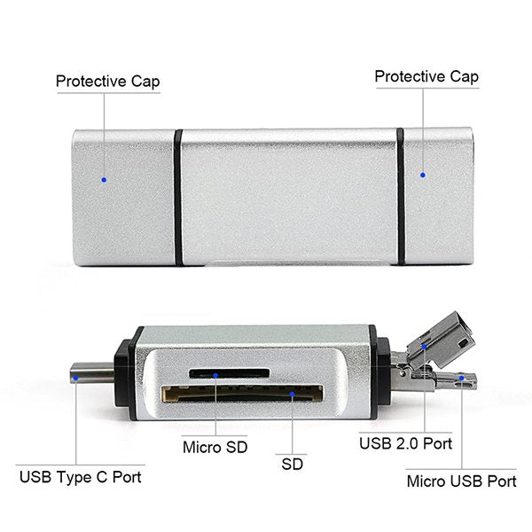 1. USB 2.0/MIicro/Type-C讀卡機,支援TF/SD卡,方便讀取和備份重要資料。鋁質材料打造,質感優雅,適合商務禮贈品使用。