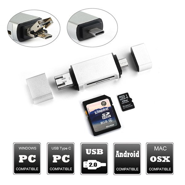 USB 2.0/MIicro/Type-C讀卡機-支援TF/SD