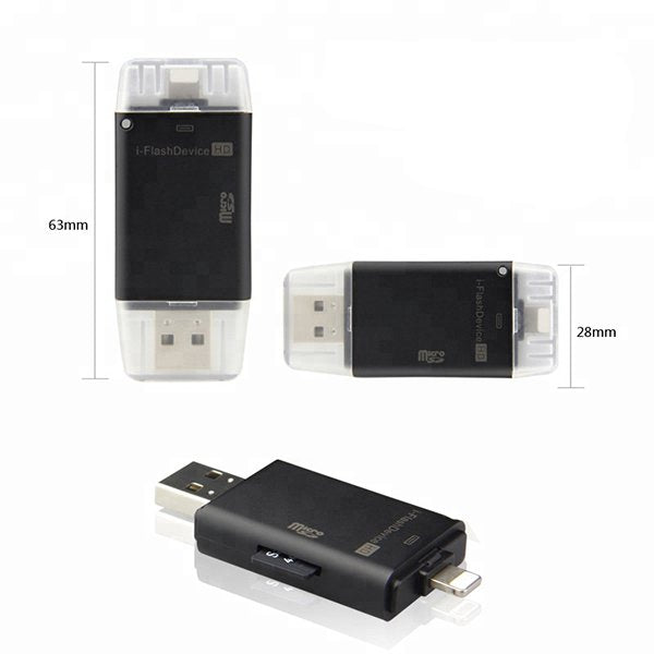 1. USB 3.0/lightning port讀卡機,尺寸63*28mm,方便攜帶,讀取Micro-SDHC/TF卡。