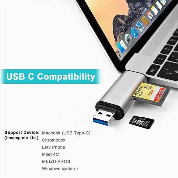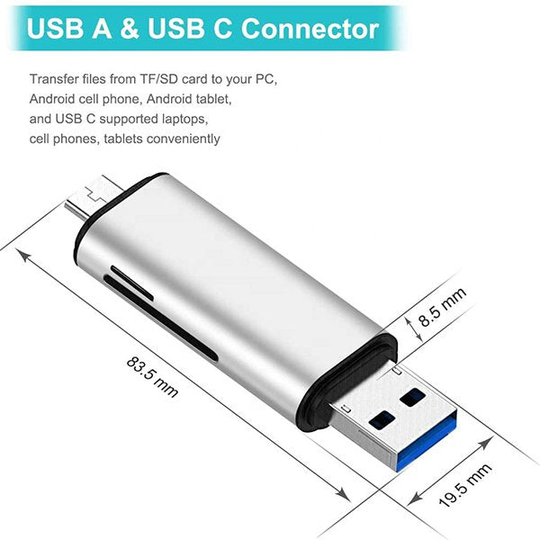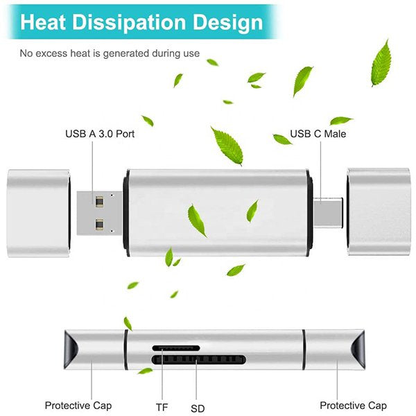 1. USB 3.0/Type-C讀卡機,尺寸小巧便攜,適合上班族使用,隨時隨地讀取TF/SD卡資料。