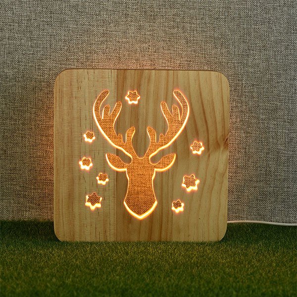 小夜燈-方形3D簍空床頭燈/木製LED燈-客製化禮贈品