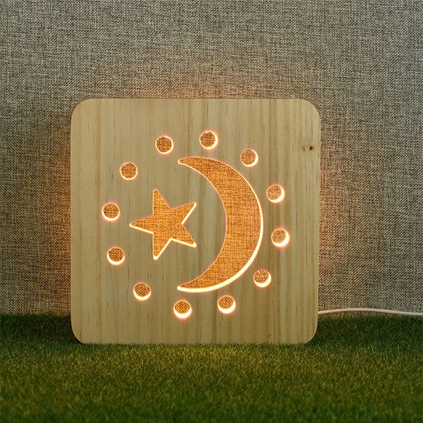 1. 小夜燈-方形3D簍空床頭燈,木製LED燈設計,營造溫馨氛圍。