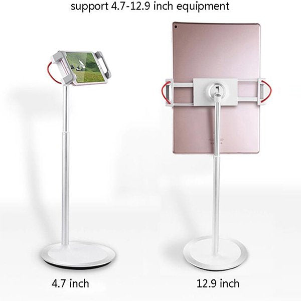 1. 高度可調的鋁合金iPad落地支架,專為辦公室、會議室或家中使用而設計,讓您輕鬆享受多角度觀看。底座直徑達170mm,穩固支撐您的iPad或平板電腦。支持4.7-12.9英吋的設備,夾頭角度可自由調整至76度,提供最佳視覺體驗。