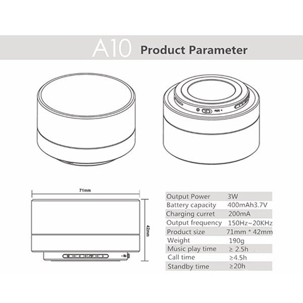1. 鋁合金藍芽喇叭,尺寸為直徑7.1*高4.2cm,重量170克,輕巧便攜,適合戶外活動或旅行使用。