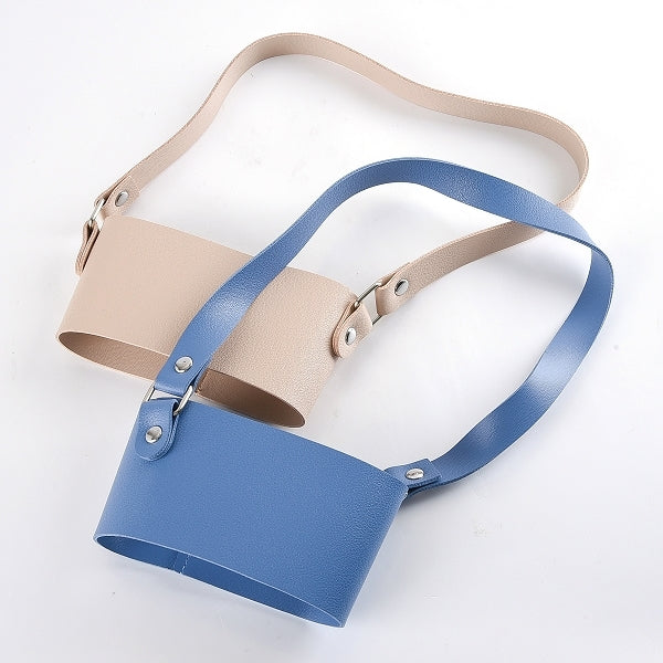 質感金屬扣手搖飲提袋-PU皮革飲料杯套