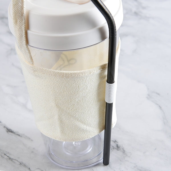 1. 寬版帆布杯套,材質為10安滌棉布,尺寸為12x8.5cm,手提長度為1x40cm,質感優雅且耐用。