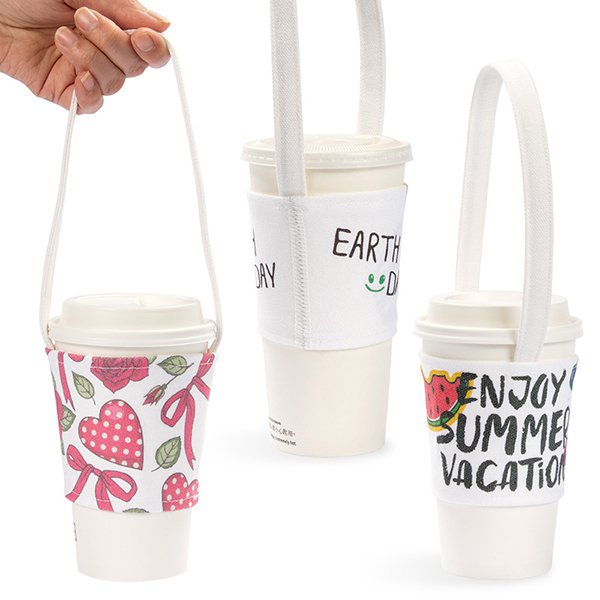 1. 染白帆布杯套,單面彩色印刷,提供客製化Logo印刷,展現品牌形象。