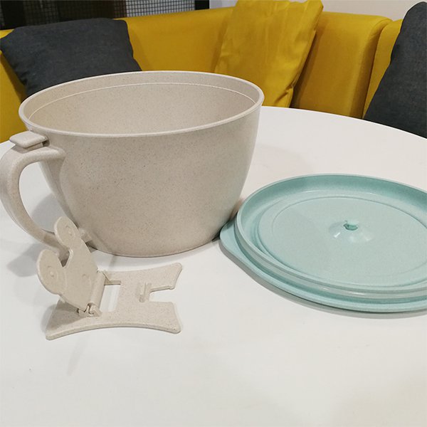 1. 小麥材質泡麵碗-附手機支架,結合小麥和PP材質,環保又耐用,尺寸為12.5*18*11CM,重量輕便只有300G。