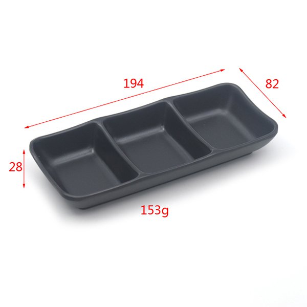 1. 塑膠3格分隔調味料碟子,尺寸為19.4*8.2*2.8cm,重量輕巧只有153g,方便攜帶使用。