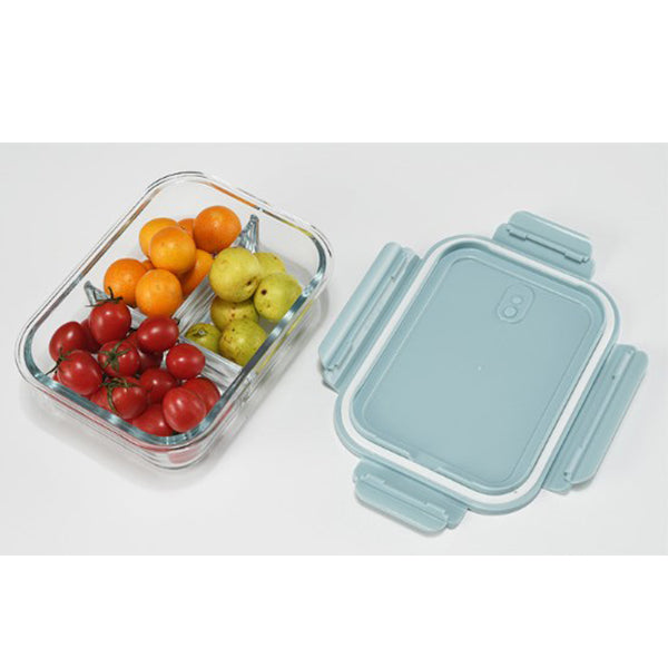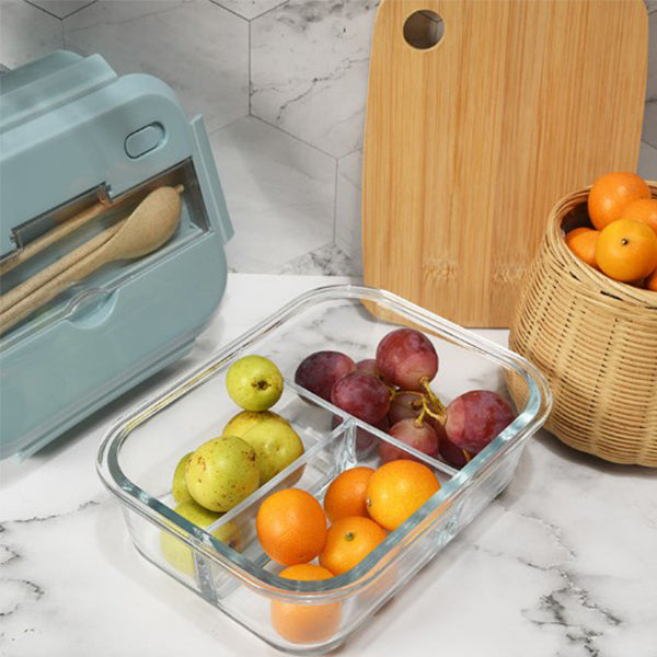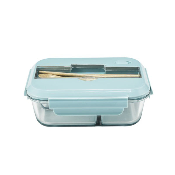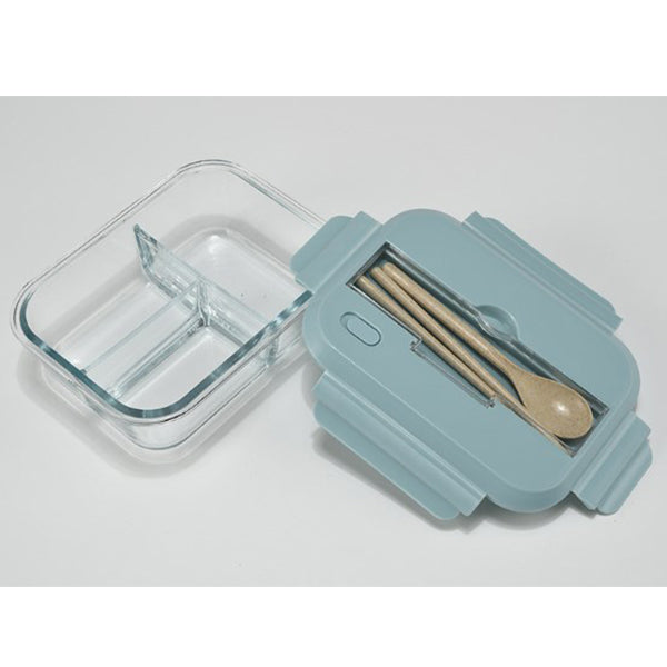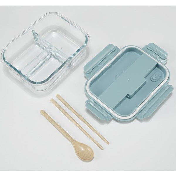 玻璃3隔保鮮盒附小麥餐具