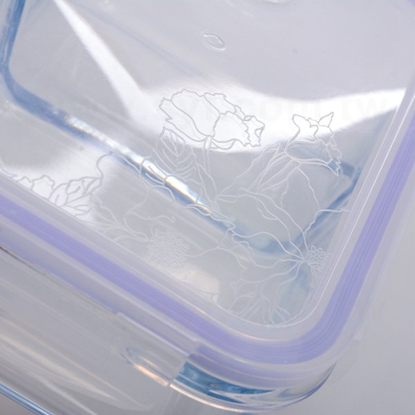 2. 耐熱玻璃保鮮盒重769g,可客製化印刷logo,展現專業形象。