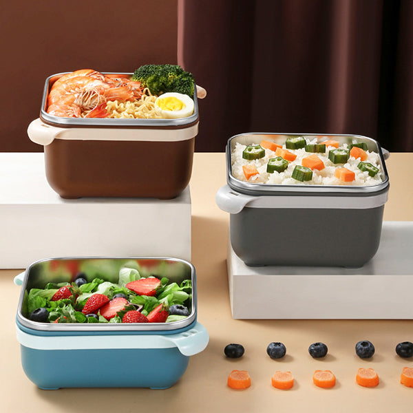 1. 1000ml/1400ml 304不鏽鋼碗,大容量設計,適合辦公室午餐使用。方形碗身設計,節省空間,方便收納。