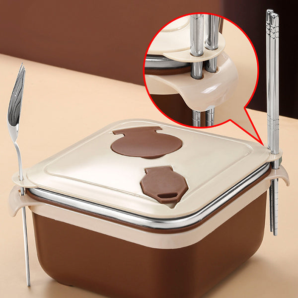 1000ml/1400ml 304不鏽鋼碗(方形)-帶蓋大容量可濾水泡麵碗