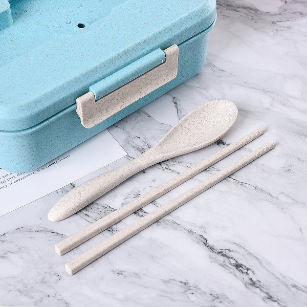 單層3格小麥餐盒-附小麥餐具筷勺二件式便攜環保盒-可客製化印刷logo