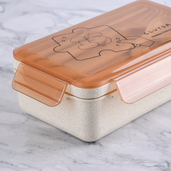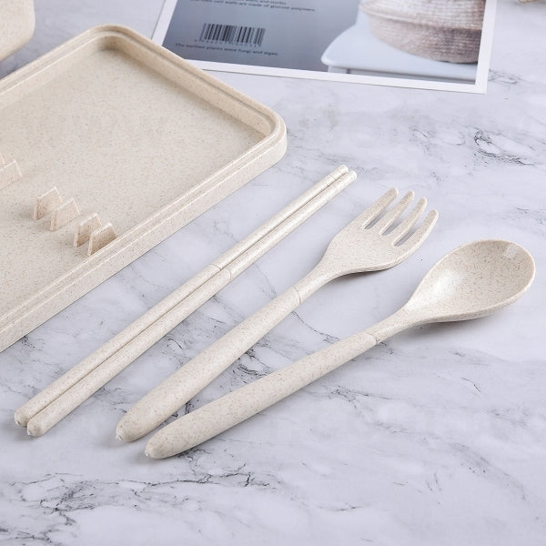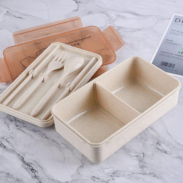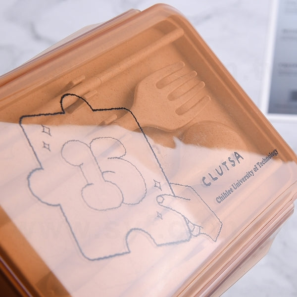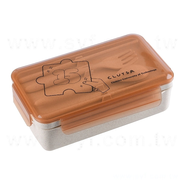 小麥纖維環保餐盒-雙層附叉匙-便攜環保盒-可客製化印刷logo