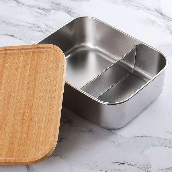 單層兩格木製餐盒-304不鏽鋼餐盒