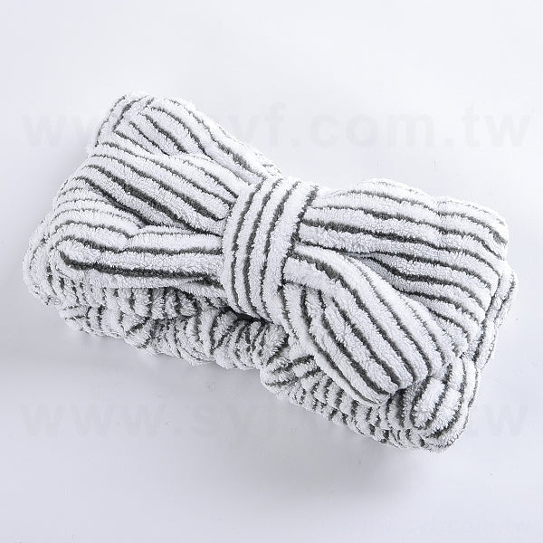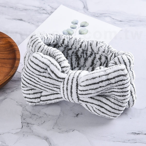 線條紋蝴蝶結洗臉束髮帶-可印LOGO